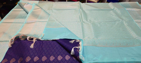 Color - Trendy and gorgeous Violet shade having a bhuttis design throughout the body and a Turquoise Blue shade border with exquisite motifs.