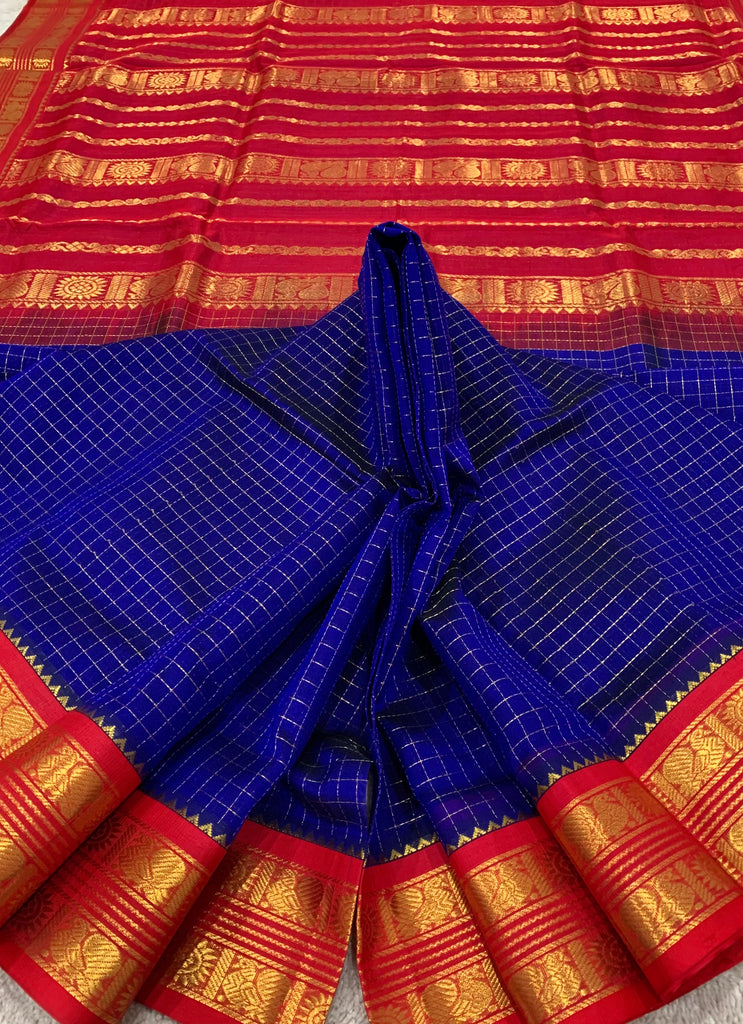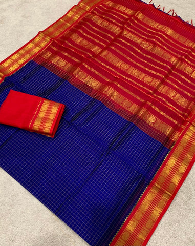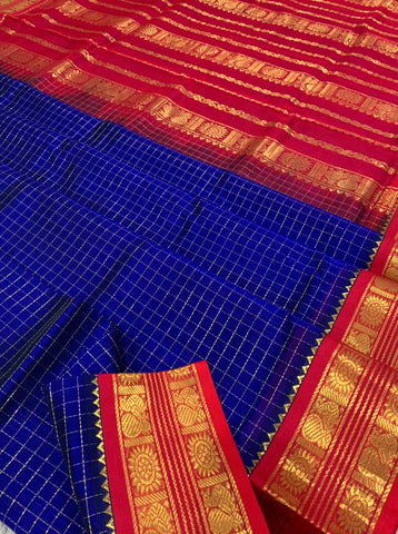 KSC - Double shaded MS Blue with Red Kattam Korvai