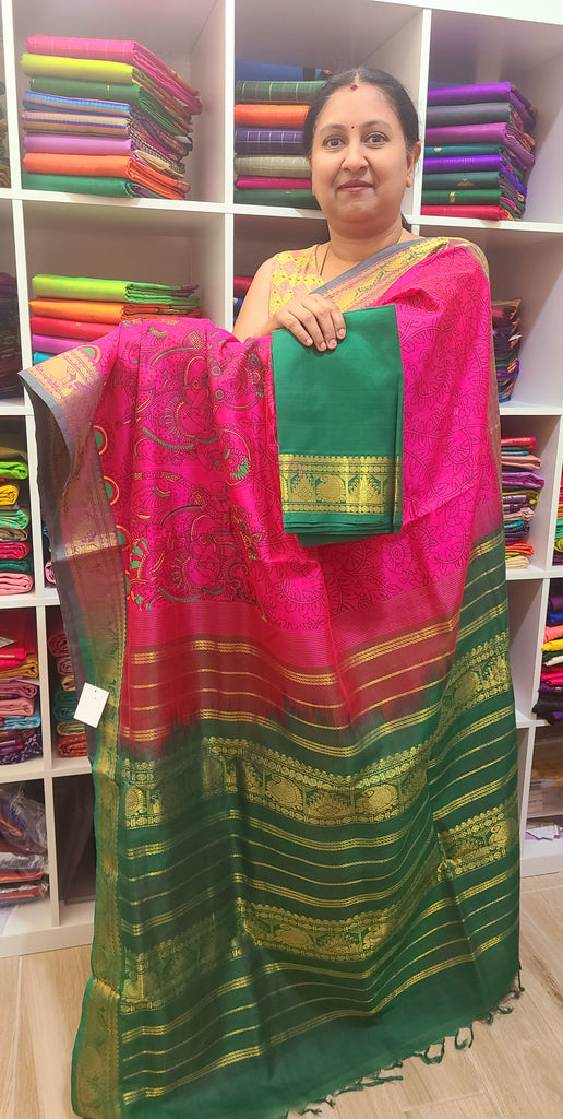 PKSC - Double shaded Panneer Rose with Rama Green Kalamkari Prints