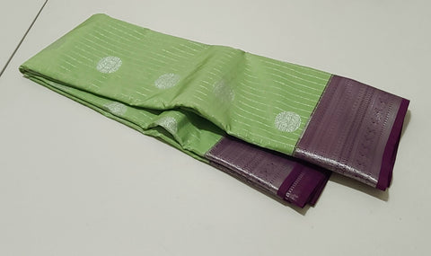Color - Trendy and gorgeous Elachi Green shade having a jari kattam weave in the body and a Dark Majentha border with exquisite motifs.