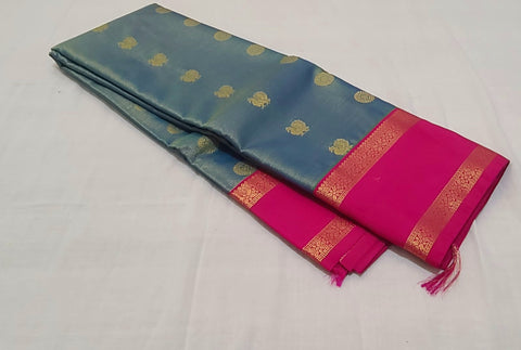 Color - Trendy and gorgeous Peacock shade having a bhuttis design throughout the body and a Tomato Pink shade border with exquisite motifs.